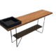 Tampo:Fixo Composto por um mix de superfícies, apresentando detalhe ripado em madeira e uma bandeja decorativa fixa com acabamento em laca ou tecido, criando um visual dinâmico e sofisticado.